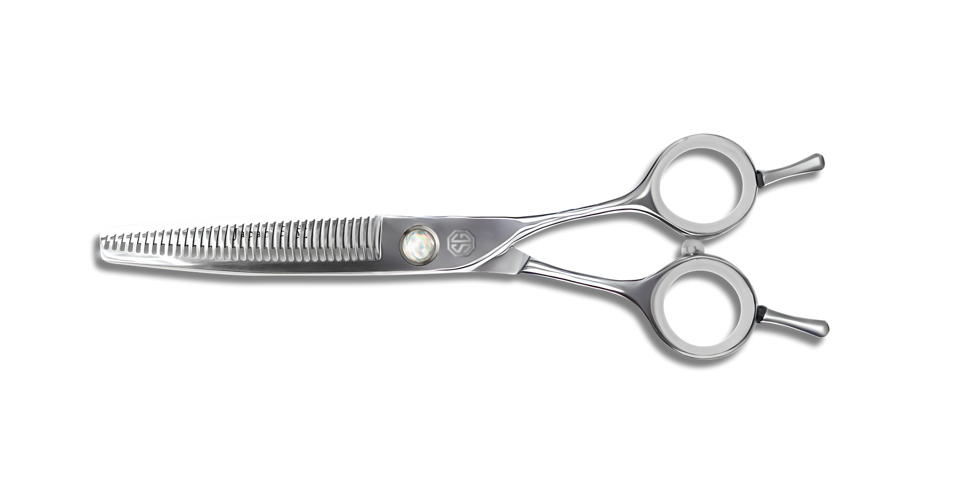 Engineered for artists who refuse to settle, Vampire introduces a 35-tooth radial design that glides through hair, removing bulk and softening layers without leaving a trace. A true game-changer, its symmetrical handle with dual finger rests lets you decide which blade stays still—opening creative techniques impossible with standard thinners.